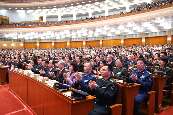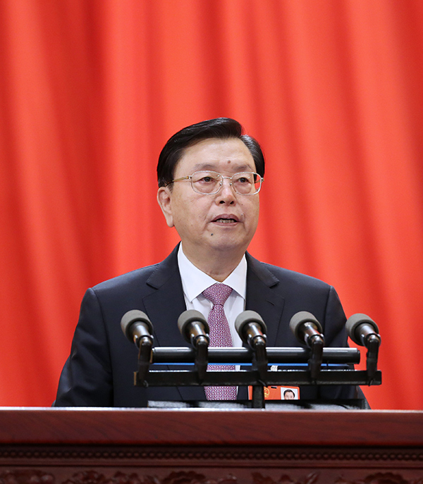 3月11日,十三届全国人大一次会议在北京人民大会堂举行第三次全体会议。受十二届全国人大常委会委托,张德江向大会作全国人大常委会工作报告。新华社记者 姚大伟 摄