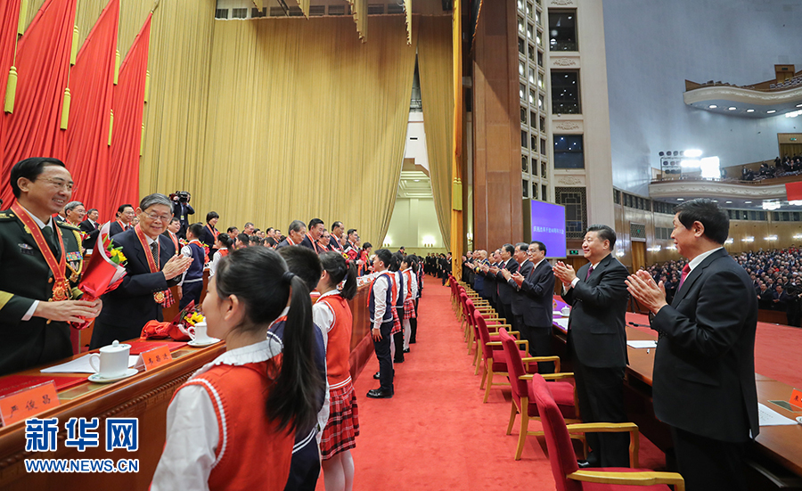 12月18日,庆祝改革开放40周年大会在北京人民大会堂隆重举行。中共中央总书记、国家主席、中央军委主席习近平在大会上发表重要讲话。这是习近平等为获得改革先锋称号人员代表颁奖。 新华社记者 燕雁 摄