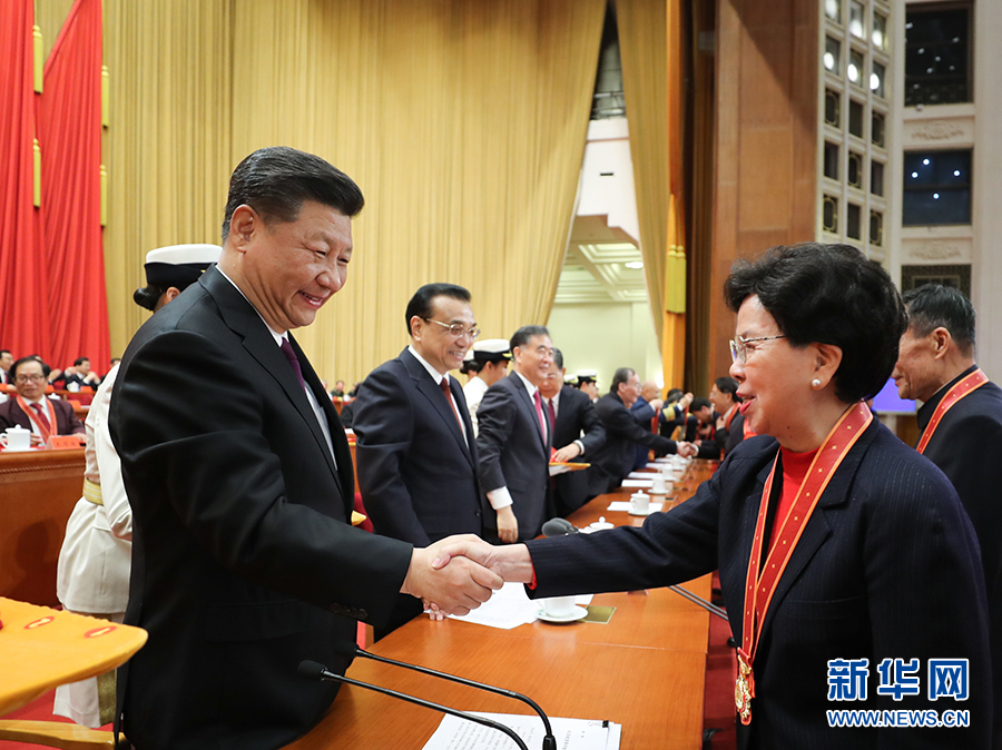 庆祝大会结束后,习近平等会见了受表彰人员及亲属代表,并同大家合影留念。