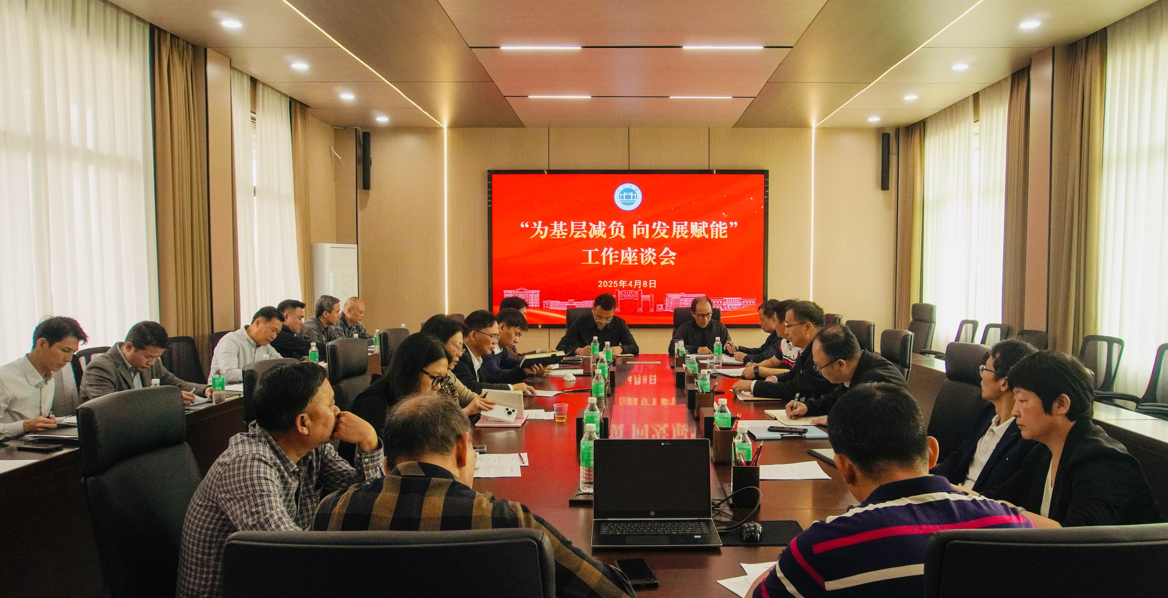 为深入贯彻落实中央整治形式主义为基层减负工作要求,推动学校为基层减负工作落地见效,切实将减负成效转化为发展动能,4月8日上午,学校在第五会议室召开“为基层减负 向发展赋能”工作座谈会。校纪委书记、监察专员王克俭出席并主持会议,机关部处有关负责人代表以及二级党组织主要负责人代表参加会议。
