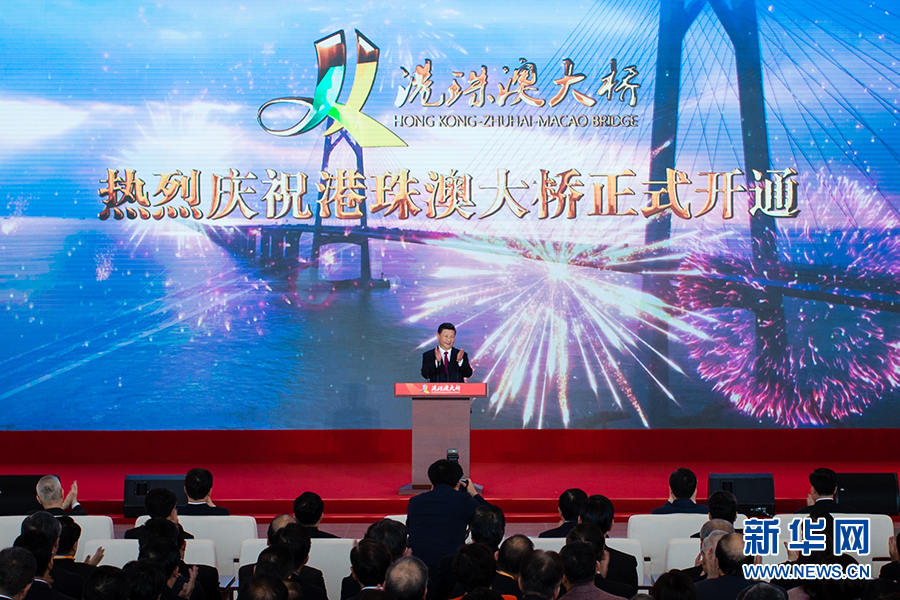 10月23日上午,港珠澳大桥开通仪式在广东珠海举行。中共中央总书记、国家主席、中央军委主席习近平出席仪式并宣布大桥正式开通。新华社记者 谢环驰 摄