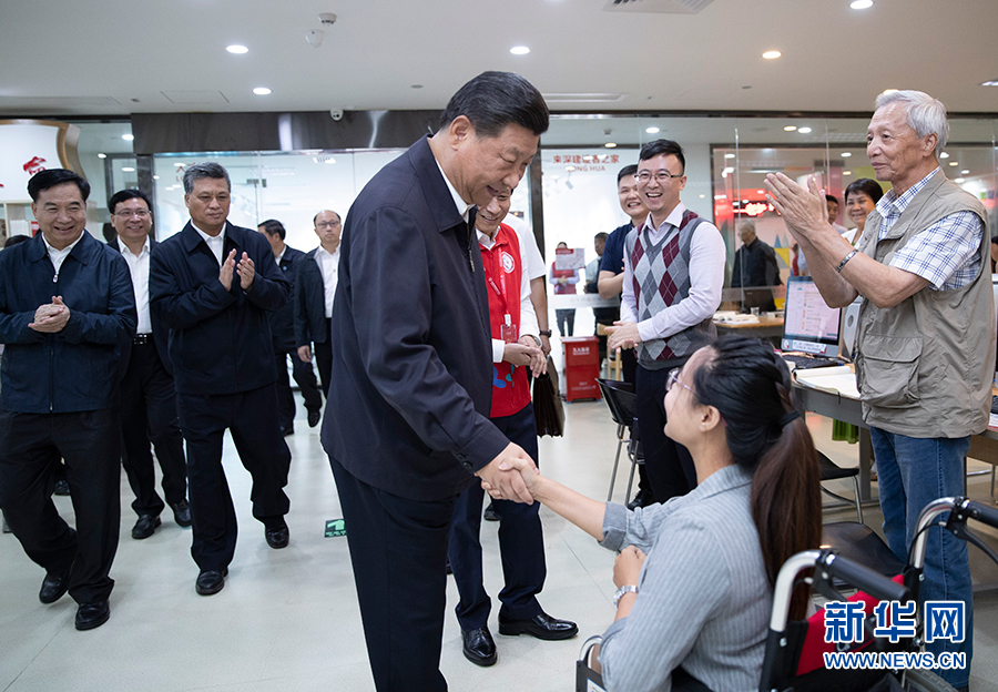 10月24日,中共中央总书记、国家主席、中央军委主席习近平在深圳考察调研。这是习近平在深圳龙华区民治街道北站社区党群服务中心同社区居民亲切握手。 新华社记者 谢环驰 摄