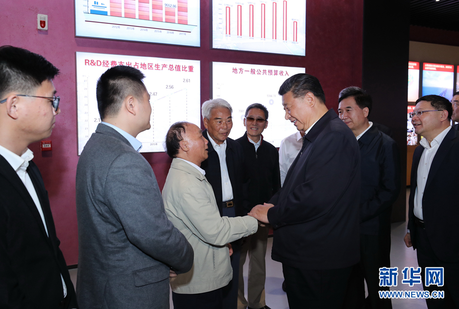 10月24日,中共中央总书记、国家主席、中央军委主席习近平在深圳考察调研。这是习近平参观“大潮起珠江——广东改革开放40周年展览”后,同广东省改革开放相关方面代表亲切交谈。 新华社记者鞠鹏摄