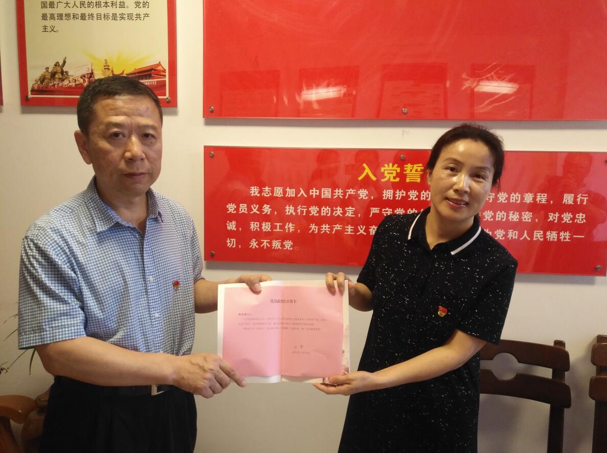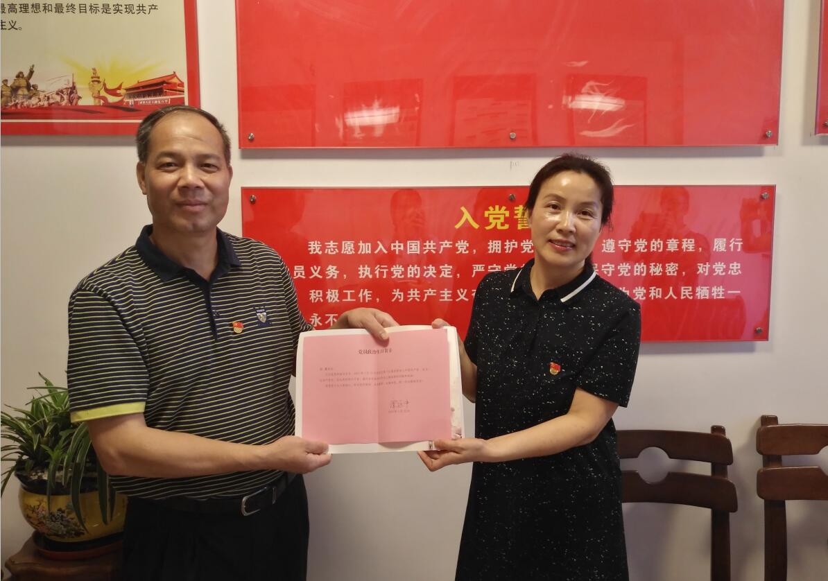 图5 支部党员黄水霞接受 “政治生日”礼物