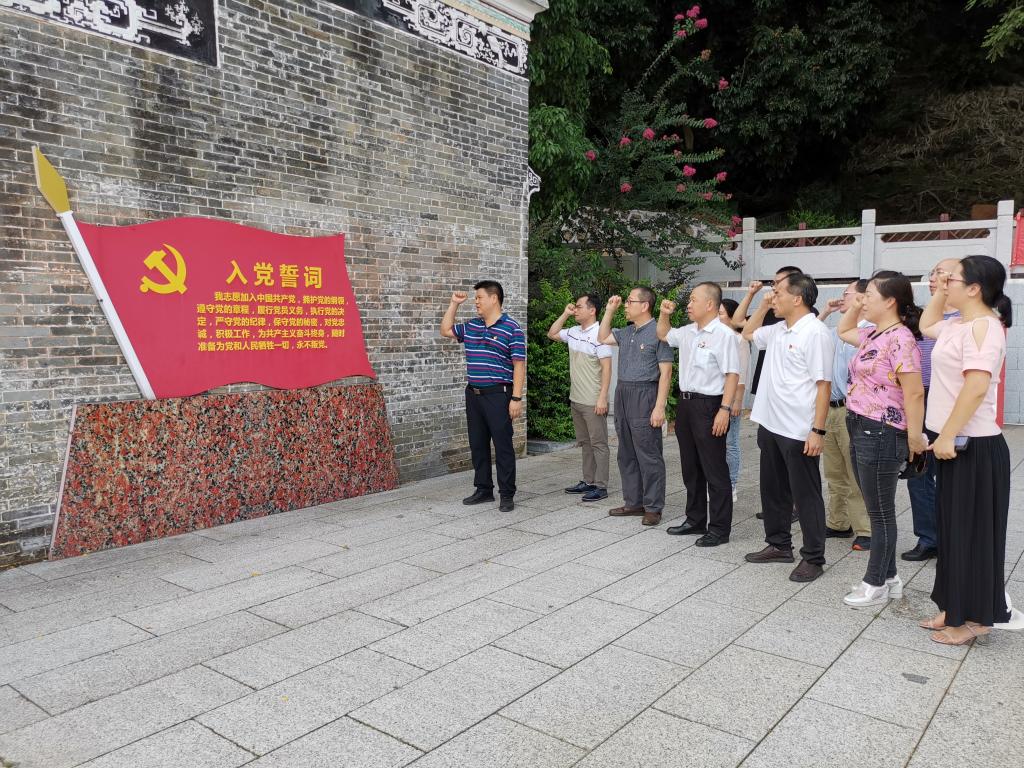 在“四·一八”武装起义的策源地、“三罗革命第一村”的龙岗村,两个支部全体党员在该镇政务导游的引导下,先后参观了红色教育基地“郁南(桂河)革命纪念馆”,开展现场教学。沿着村内道路追寻红色历史的足迹,听取政务导游讲述红色历史和革命先辈的光辉事迹,感受红色文化。参观学习后,全体党员在革命纪念馆前庄严地举起右手,重温入党誓词,接受党性教育,不忘初心,牢记使命。