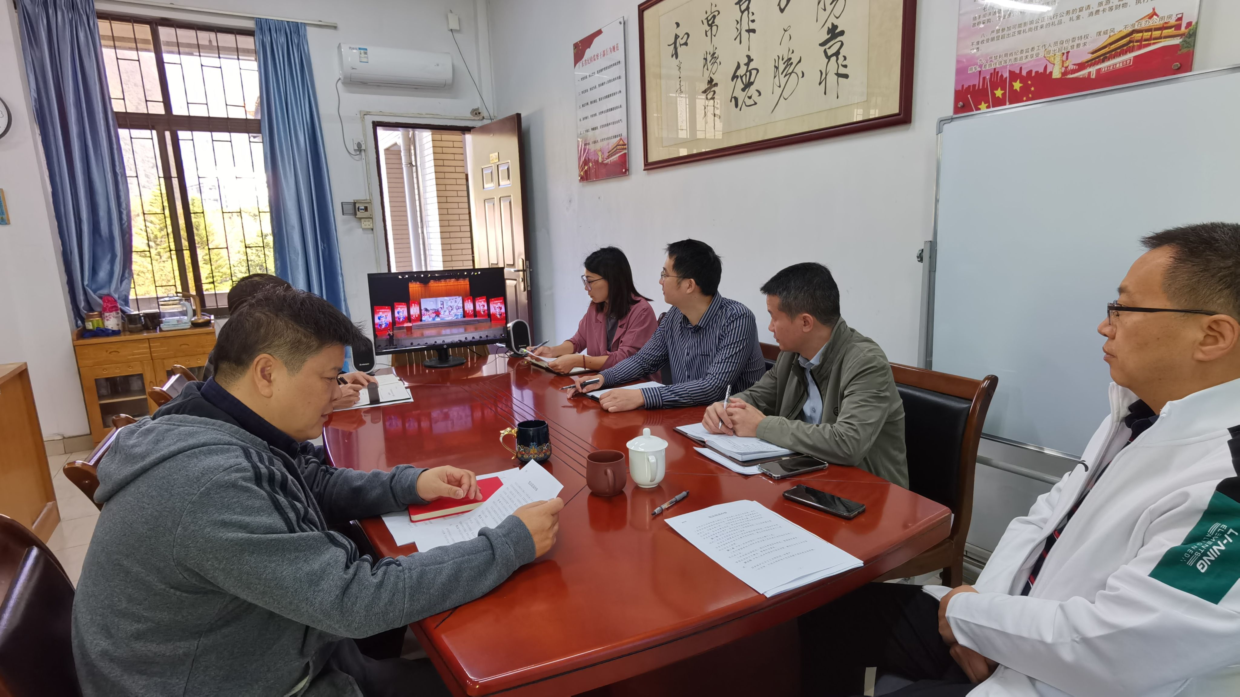 为深入学习贯彻党的二十届三中全会精神和全国教育大会精神,加强宪法法治教育,根据相关通知要求,12月4日上午,在学校纪委书记王克俭的带领下,纪检监察室组织全体纪检监察干部在行政楼502室集中观看了第十一个国家宪法日教育系统“宪法晨读”活动直播。
