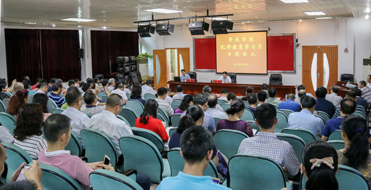 校党委书记曾桓松在讲话中指出,党的十八大以来,以习近平同志为核心的党中央全面从严治党、惩治腐败,让党心民心为之一振,党风政风为之一新,形成风清气正的崭新政治生态。在新形势下,我校以“讲政治、强党性、严纪律、守规矩”为题,深入开展纪律教育月活动,就是要教育和引导全体党员干部深入学习贯彻习近平总书记系列重要讲话精神和治国理政新理念、新思想、新战略,促进党性宗旨教育、党规党纪教育、优良作风教育,为我校建设特色鲜明的高水平应用型综合大学提供强有力的政治、纪律保障,推动办学事业更上一层楼,以优异成绩迎接党的第十九大胜利召开。