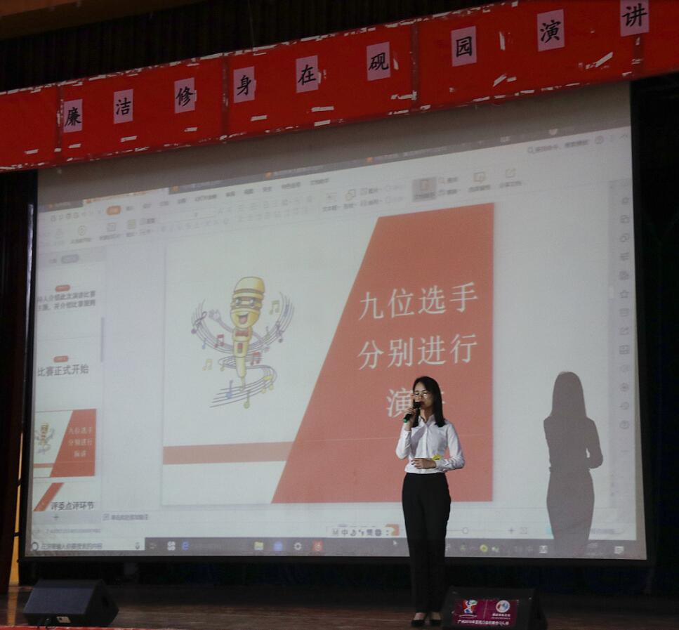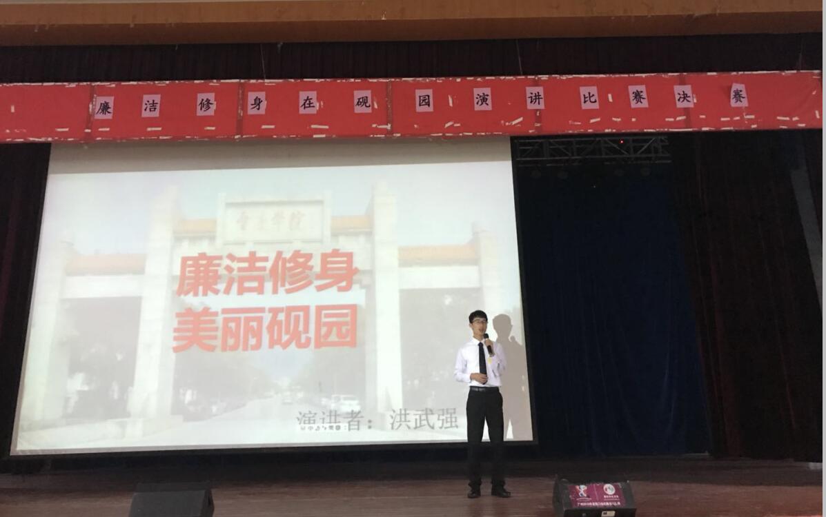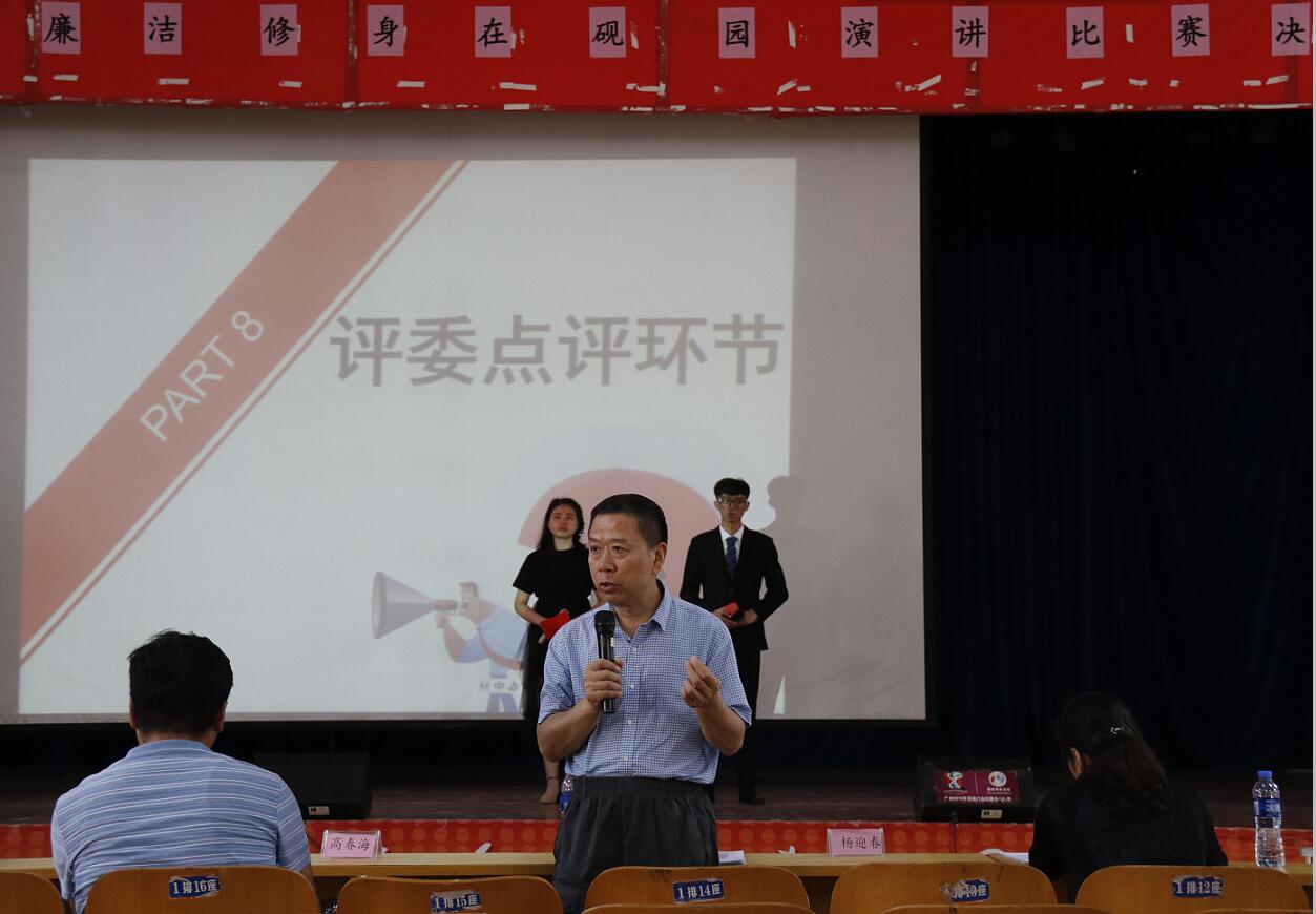 6月2日,我校第一届“廉洁修身在砚园”主题演讲决赛在学生活动中心礼堂举行。此次活动在校纪委指导下,由学生廉政文化研究协会举办,旨在配合我校今年“廉洁学校”建设活动,调动全校广大师生自觉抵御腐败文化的侵蚀,增强廉洁修身的主动性,弘扬诚信守法、清廉节俭和正直自律的廉洁文化。学校纪委办监察处反腐败研究中心负责人观看比赛并为选手作点评。