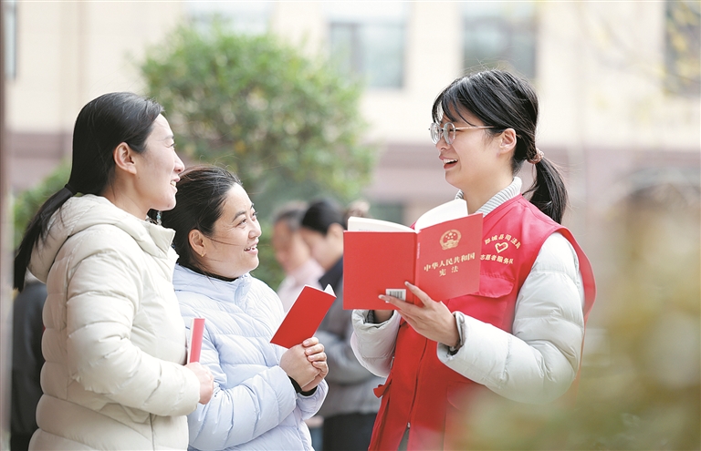 宪法的根基在于人民发自内心的拥护,宪法的伟力在于人民出自真诚的信仰。保障宪法和法律实施,夯实全面依法治国社会基础,提升全民法治素养是重要前提,也是各地各部门的必答题:临近海南自贸港封关运作,当地相关部门把宪法精神和自贸港相关法律法规内容融入趣味游园等活动,让法治课堂活泼起来;在山东荣成,学生走进法院感受“模拟法庭”,在拟真实践中感悟司法运行的原理……从各地经验看,顺势而为、因事制宜,更加注重受众的参与、互动和体验,渐渐成为普法宣传教育的一种趋势,探索创新带来的是入脑入心的效果。