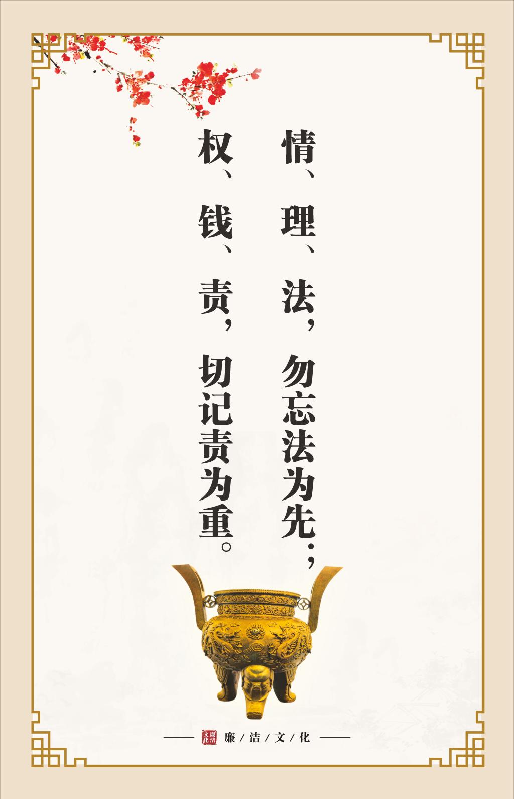 情、理、法,勿忘法为先;权、钱、责,切记责为重。