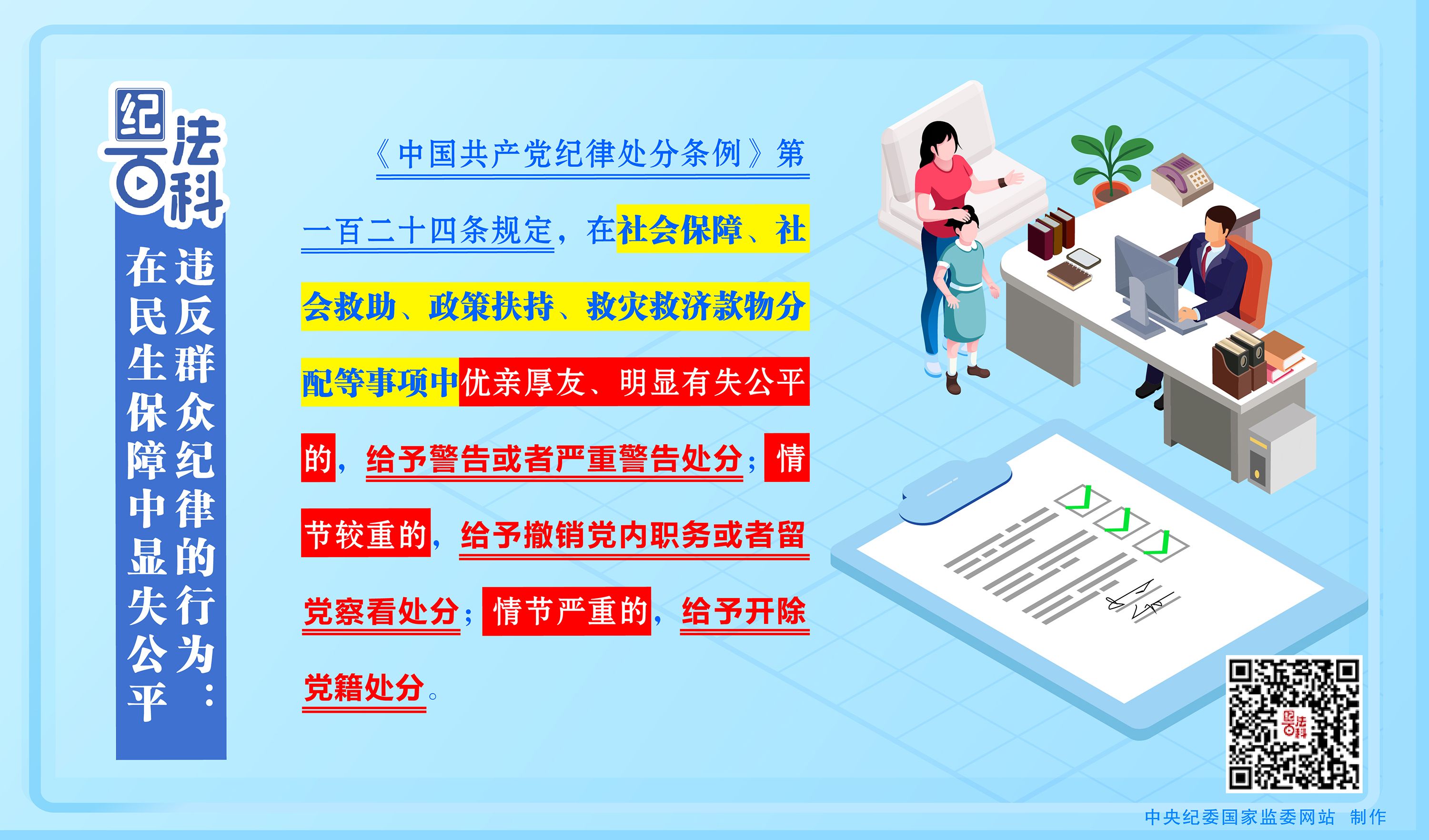 执纪监督中发现,有的党员、干部在救济、补助上办事不公,优亲厚友、厚此薄彼,把救济、补助款物作为“顺水人情”分配给不符合条件的亲友,形成“关系保障”,“暖”了亲友,却“寒”了群众;有的未按照保障性住房管理规定进行公开摇号配租,直接安排有关人员插队配租等。这些行为,没有把一碗水端平,影响国家惠民政策的落实,使党员、干部在群众工作中失去公信力。
